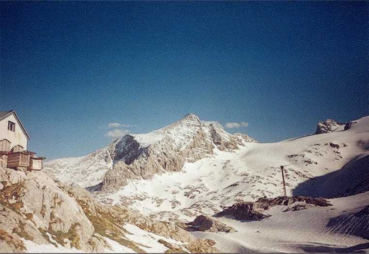 Blick (zurück) zur Simonyhütte (in der Mitte des Bildes) - rechts drängt sich der Schöberl ins Bild
